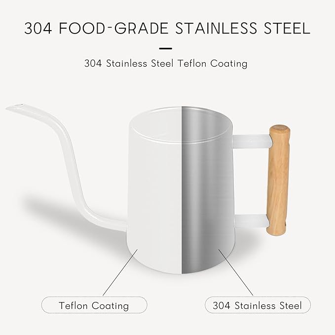 - [COMFORTABLE WOODEN HANDLE] The indoor watering can has a round comfortable wooden handle that is easy to grasp and won't cut your hands.This stainless steel watering can open built-in open top design, it is convenient to refill water