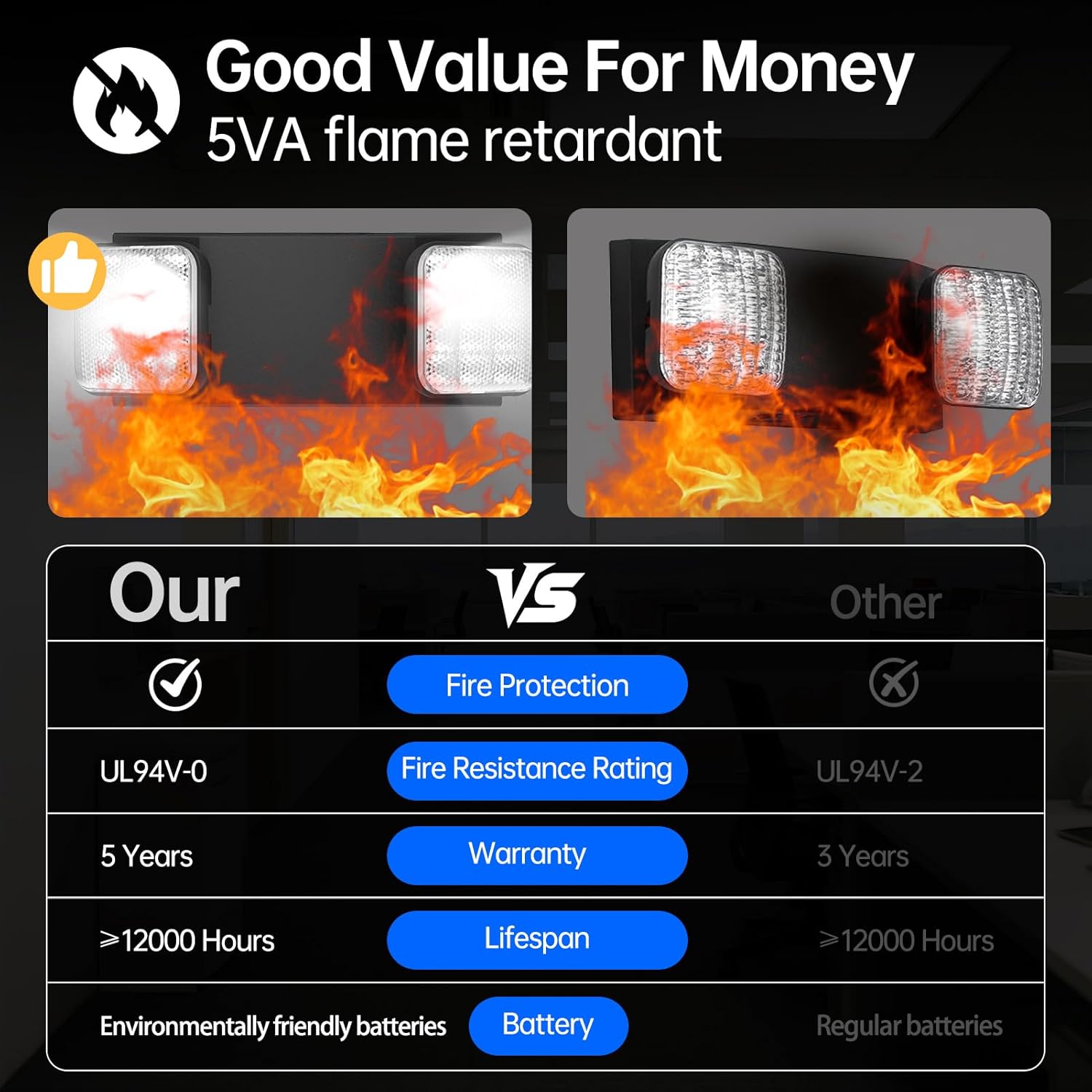 - ✔[ Ratings] - Black emergency lights of UL damp location listed standard at 50-104 degrees F, meets or exceeds all applicable requirements for Life Safety Code and state specific requirements.