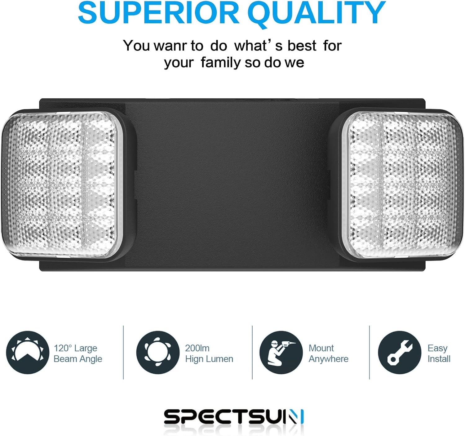 - ✔ [5 Year's Warranty] - Led Black Emergency light of SPECTSUN has been passed UL certificate and comply with FCC regulations. We promise 5 years warranty for the electrical parts and housing, 3 years warranty for battery.
