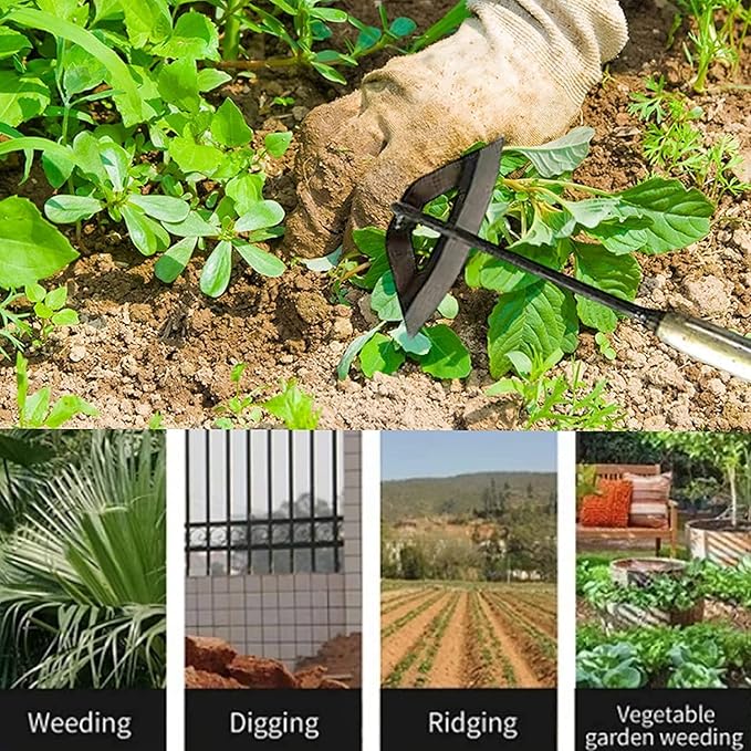 - EASY TO USE: After the hoe is extended, pull it back to quickly weed. Easy to install, light and easy to use, the grip is not tired.Easy and effortless weeding and soil loosening, planting flowers and vegetables is convenient. A very practical gardening tool.
