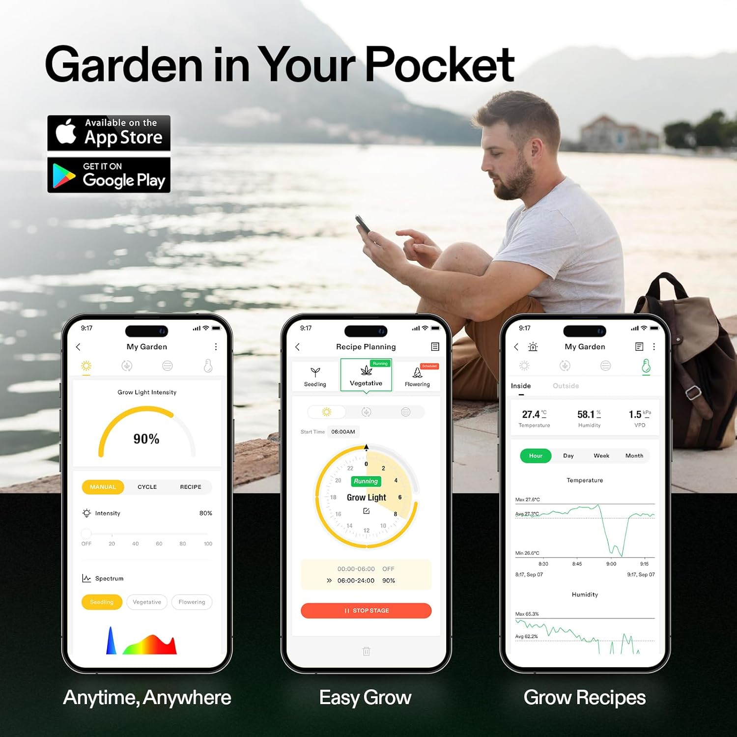 - Sunlike Spectrum Lighting: The grow light has an optimal full-spectrum coverage that includes 3000K, 5000K, 660nm, 750nm light (i.e., white, warm white, red, and far-red light); Give your plants what they need in every growth stage