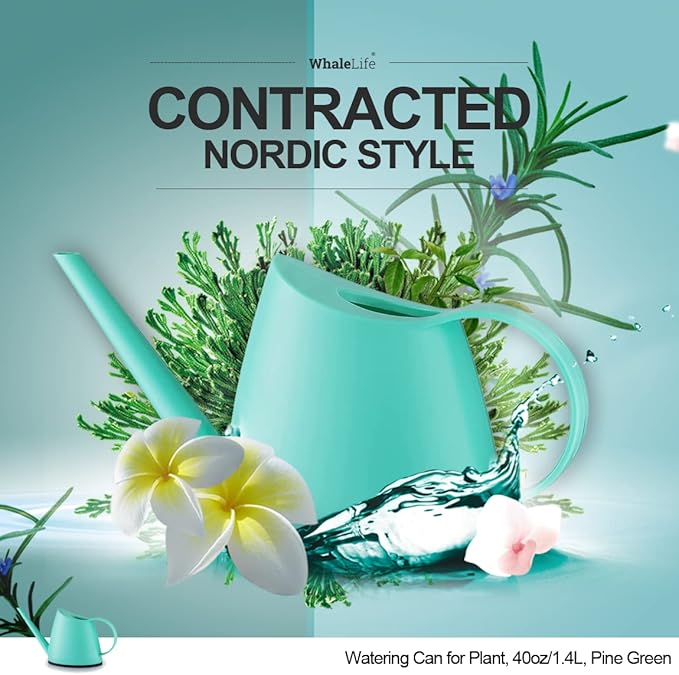 WhaleLife Indoor Watering Can for House Bonsai Plants (1.4L, Pine Green)