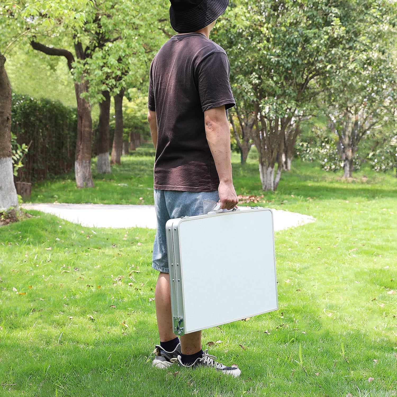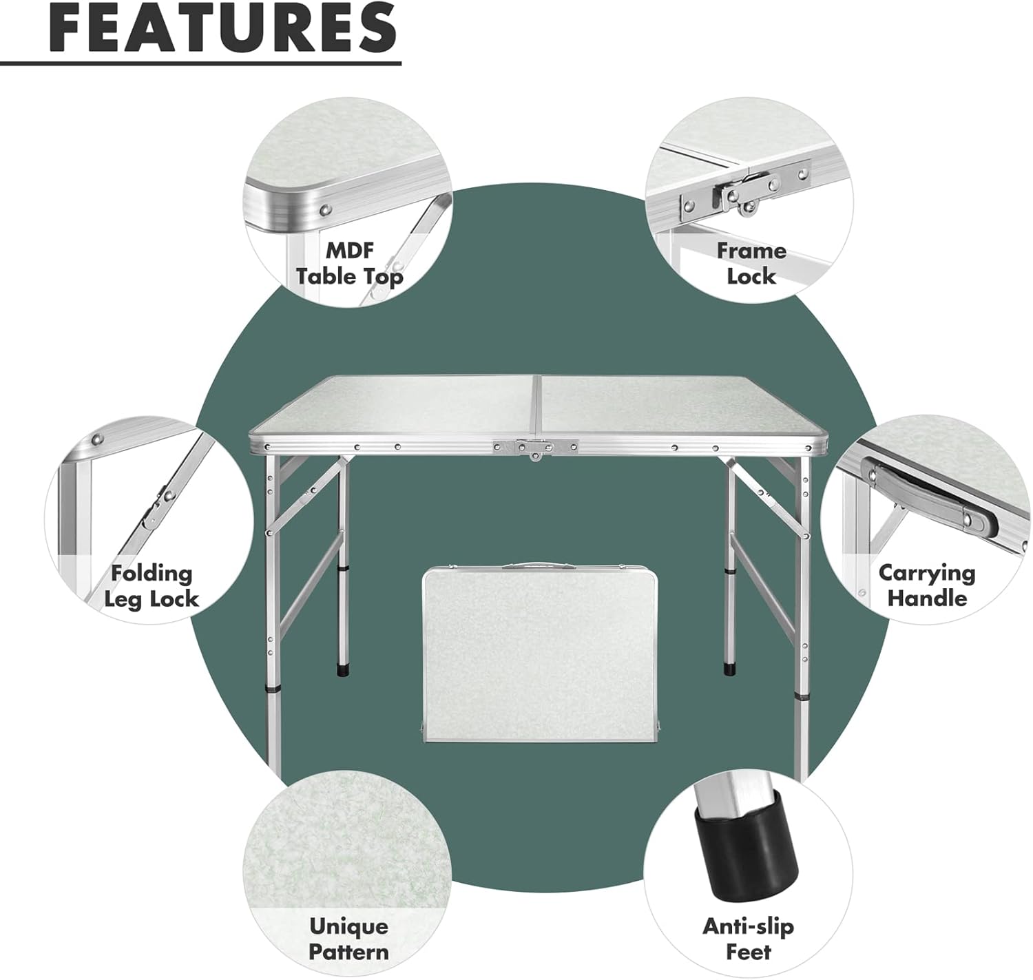 - Easy Set-Up & Take Down: Easily install the picnic aluminum table in seconds, no tools are required. Fold out the foldable table, insert the extended legs, lock the legs with lever locks, and lock the tabletop with side locks. Quick folding is also possible with the side lock when disassembling