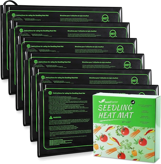 MET Certified 6 Pack Seedling Heat Mat, Seedfactor Waterproof Durable Germination Station Heat Mat, Warm Hydroponic Heating Pad for Indoor Home Gardening Seed Starter