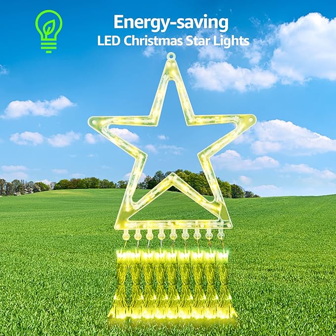 - Safety and Energy Efficiency: To ensure absolute safety, the star Christmas lights have been thoroughly tested and fully complied with the UL certification standard. Furthermore, the product uses a new type of energy-saving LED lamp beads, characterized by high brightness and low energy consumption, allowing 80% energy savings.