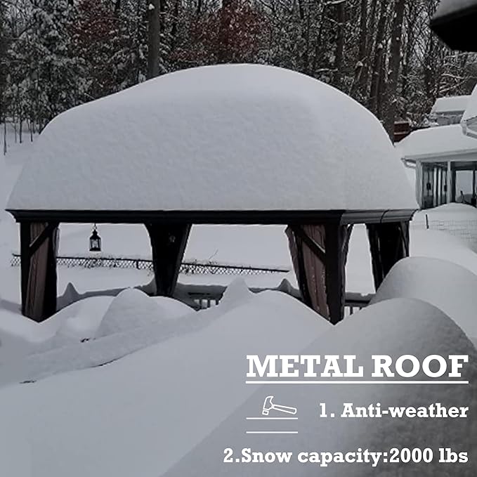 - ✅Strong Structure Hardtop Gazebo - This gazebo features 4.7” x 4.7” triangular poles and 5” x 4” beams, providing a solid foundation, ensuring both stability and longevity. Complemented by a galvanized steel roof and a sturdy frame, the gazebo offers unparalleled support. It is capable of withstanding snow loads of up to 2500 lbs and wind speeds of up to 40 MPH.