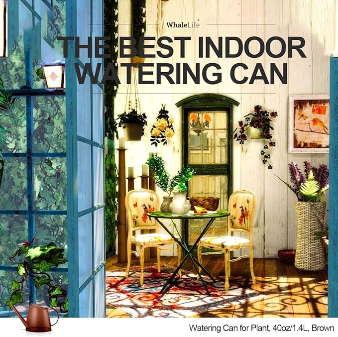 WhaleLife Indoor Watering Can for House Bonsai Plants (1.4L, Brown)
