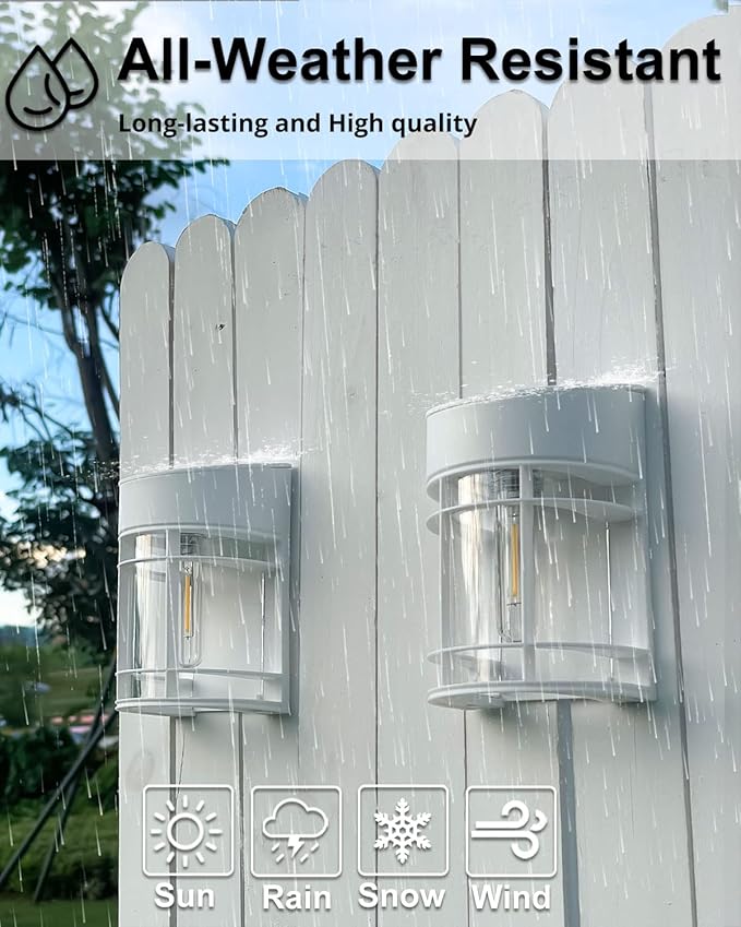- All-Weather Resistant - Long-lasting and durable, Made of ABS, IP44 waterproof solar outdoor lights work well on all kinds of weather, such as snow, rain or extreme weather. The perfect addition to your outdoor fence garden backyard. When darkness was descending, solar lights giving the garden many eye-pleasing luminous decoration.