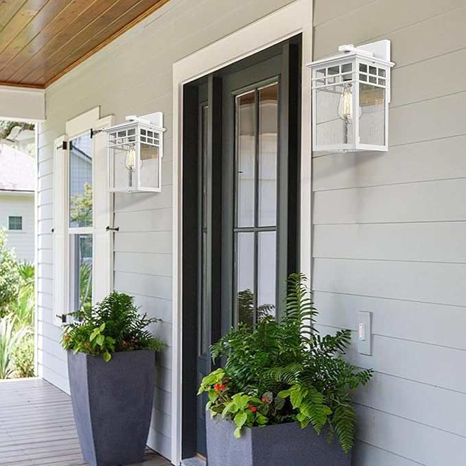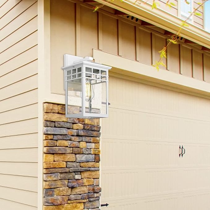 Outdoor Light Fixture Wall Mount, Rustic Exterior Lights Fixture Wall Sconces with Seeded Glass for Front Porch, Waterproof Outdoor Lantern in White Finish for Home, Garage, Barn, Storefront