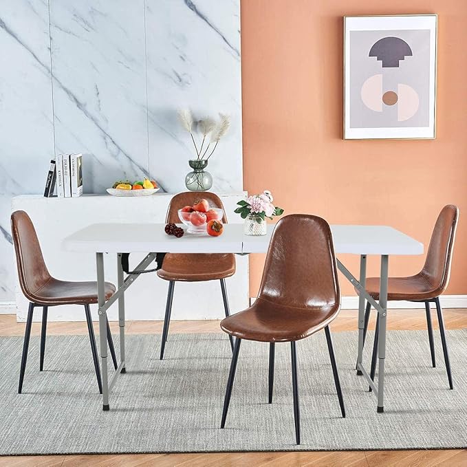 - 【Sturdy Construction】4 foot folding table is supported by powder coated steel round tube table legs with connecting locks on the frame for added strength and stability. The foot caps on the table legs are designed to help maintain stability during each use, protecting your floor and preventing slippage.