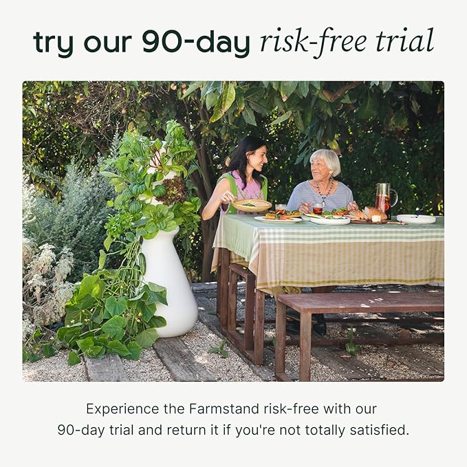 - GROW INDOORS OR OUTDOORS: Grow 12 plants at a time in your Farmstand. Easily add additional levels when you want to grow more on your Farmstand. Grow in a sunny spot outside in your backyard or balcony - or grow indoors with the help of our optional Glow Rings (*Sold Separately*).