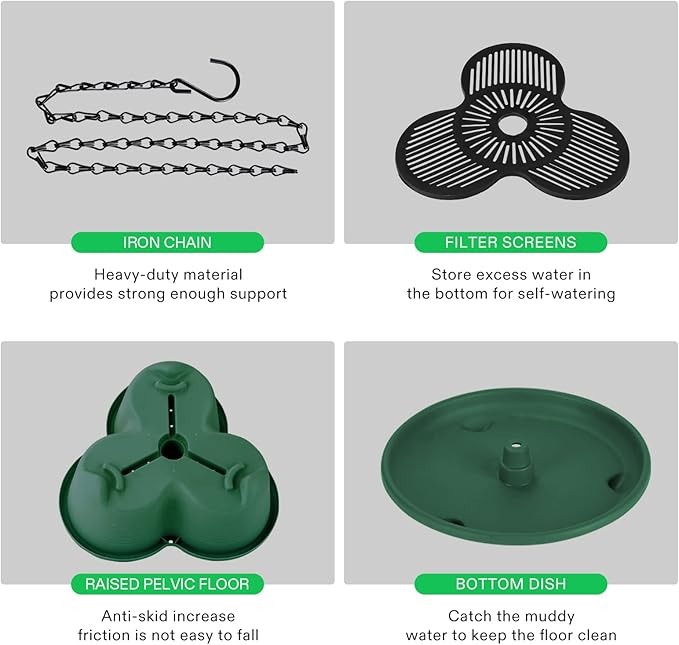 - Different Combinations: You can stack 2 or 3 or 4 tier; This planter can be hang with chains or used on a cylindrical rod