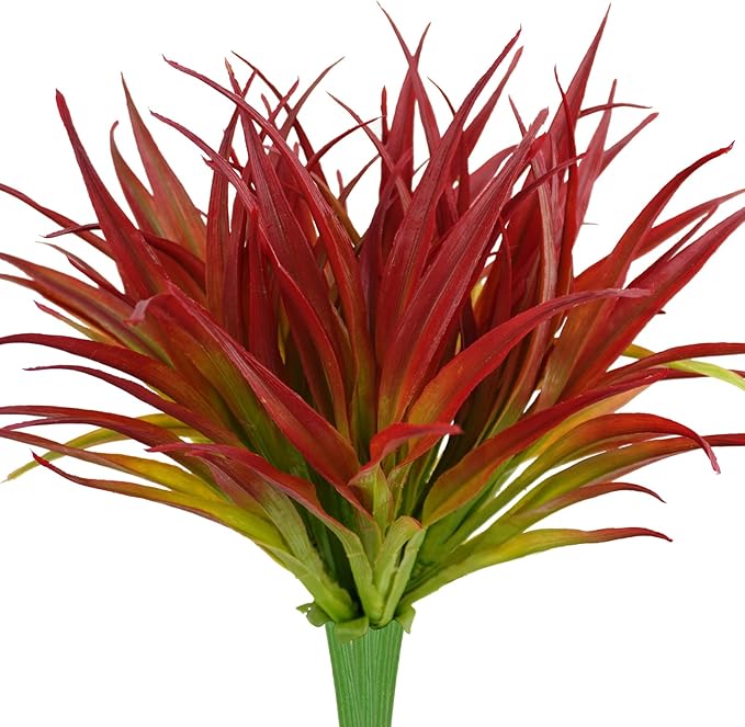 6Pcs Artificial Grass Fake Plants 17.3in Outdoor Plants UV Resistant Greenery Stems Fake Grass for Home Window Garden Office Patio Pathway Front Porch Christmas Décor Light Green & Red