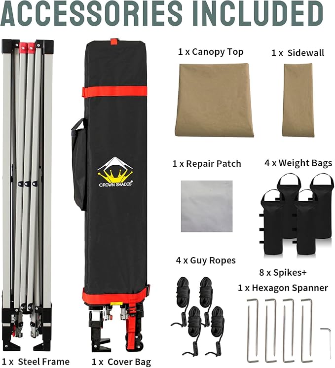 CROWN SHADES 10x10 Pop Up Canopy with 1 Side Wall - Beach Tent with One Push Setup - Outdoor Sun Shade for Events, Parties, Camping - Gazebo with STO-N-Go Cover Bag (Beige)