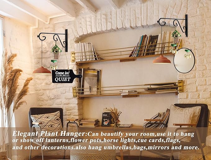 - Easy To Install:Each plant hook measures 12" X 7",set of 2.Suitable for both outdoor and indoor use,equipped with along with self-tapping screws and expansion screws,easily bite into wood or walls,making it more convenient and quick to use.