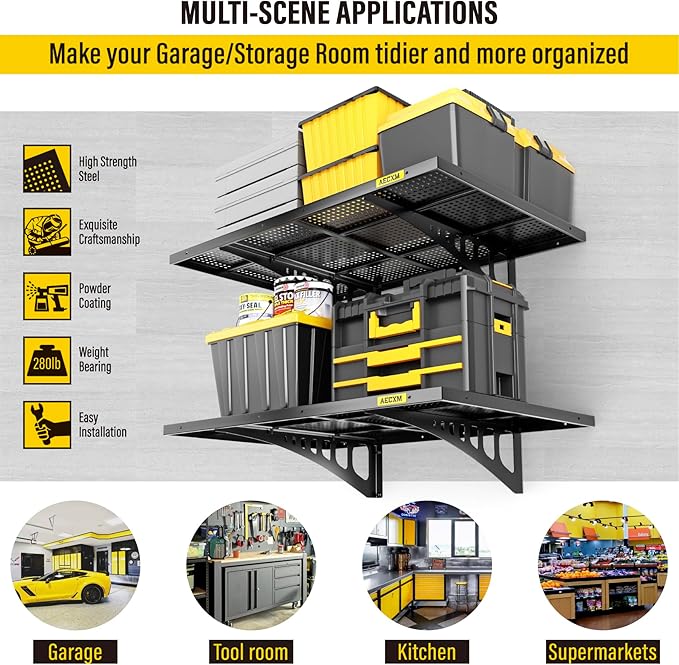 - Easy Installation: Includes high-quality screws and a detailed instruction manual, allowing one person to effortlessly complete the setup. This 2x3ft garage shelf wall mount offers ample storage space for your garage, kitchen, or pantry, keeping everything organized and within reach