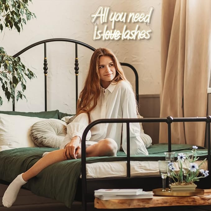WLHOPE All you need is Lashes Neon Sign, Warm White Led Neon Signs for Wall Decor, USB Lash Neon Signs Letter Neon Lights for Bedroom Bar Party Girls Room Nail Room Salon, Lash Room Decoration
