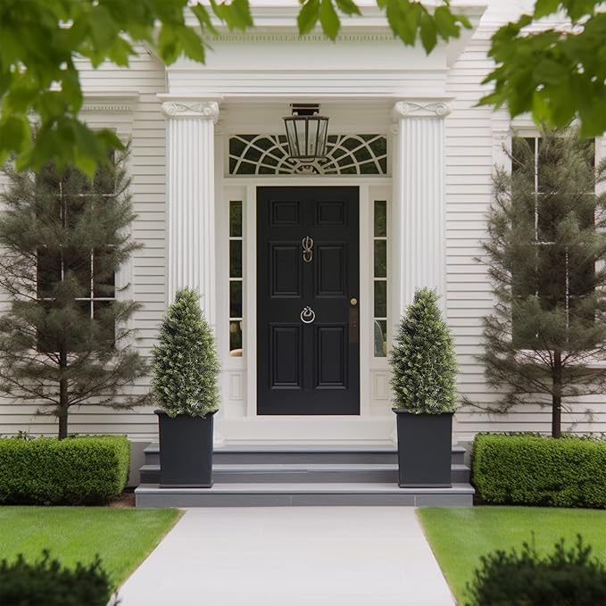 - [Product size]: This artificial cedar potted plant is 35 inches high and 12 inches wide. Made from high-quality materials, our faux shrub is designed to withstand the test of time, maintaining its vibrant colors and shape, even in outdoor settings