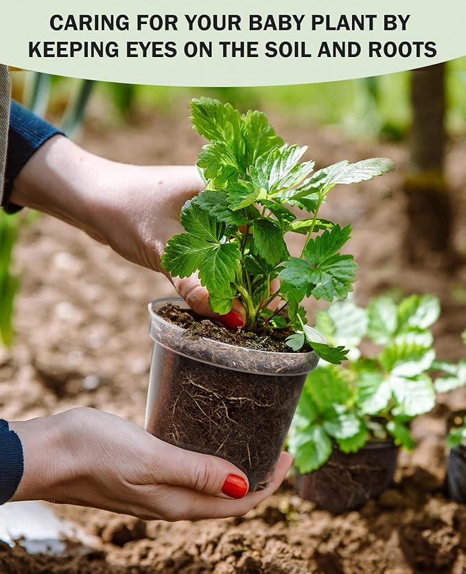 - 🌱【Transparent View of Soil and Root System】Still worried about your plant's rotten roots? Not sure how much you should water? Then you need such clear nursery pots. Compared with the "semi-transparent" flower indoor seedling pots on the market, you can have a clearer and more intuitive view of the soil moisture and the health of your plant's root system, which will help you to confirm the amount of watering and take better care of your plant's growth by these pots for plants.