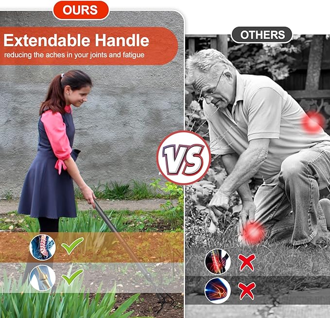 - 【Comes with Extension Poles】This gardening tools set is easy to use, ergonomic design provides you with a good user experience, for long distance work, just take off the rubber sleeve at the end of the tool and install the extension pole can be easily solved.