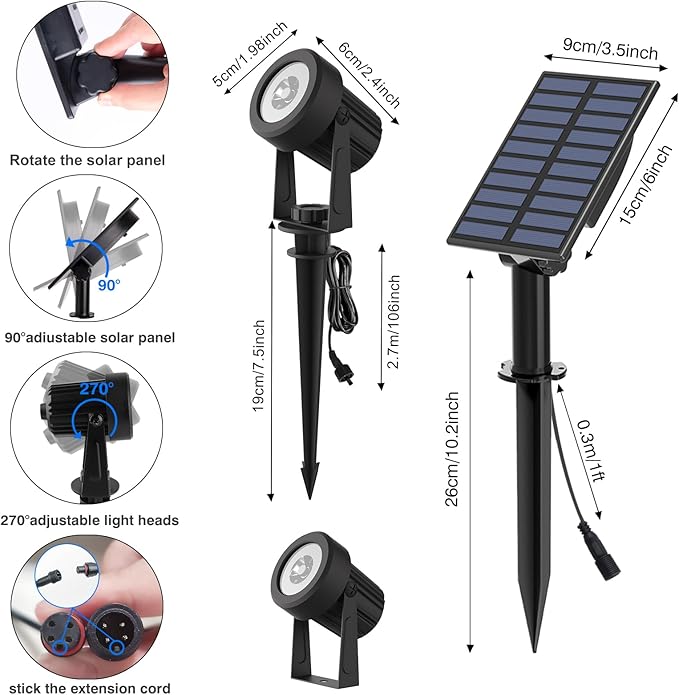 - Multiple Uses: Waterproof IP65, don't worry about rain, snow and dust. The solar spotlight perfect for halloween Christmas decor lights to create the wonderful festive atmosphere. Great for adding accents to house garden backyard palm tree flag fence