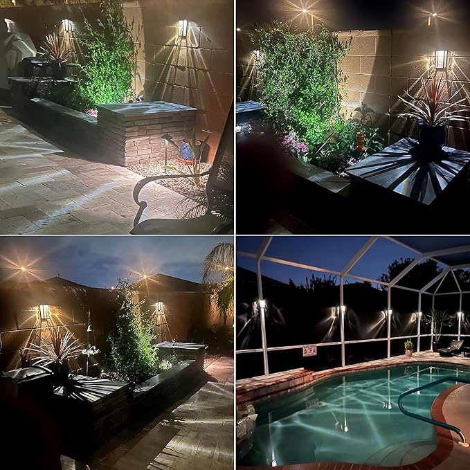 - 【solar fence lights outdoor waterproof led】The solar wall lights outdoor is made of upgraded metal material and IP44 waterproof design, no worries about heavy rain, snow, frost, or sleet, withstand all kinds of weather all-round the year. Perfect for outdoors, walls, garages, driveways, porches, gardens, patios, decks, fences, gutters, and more places you want to light or decoration. The perfect addition to your outdoor fence garden backyard.