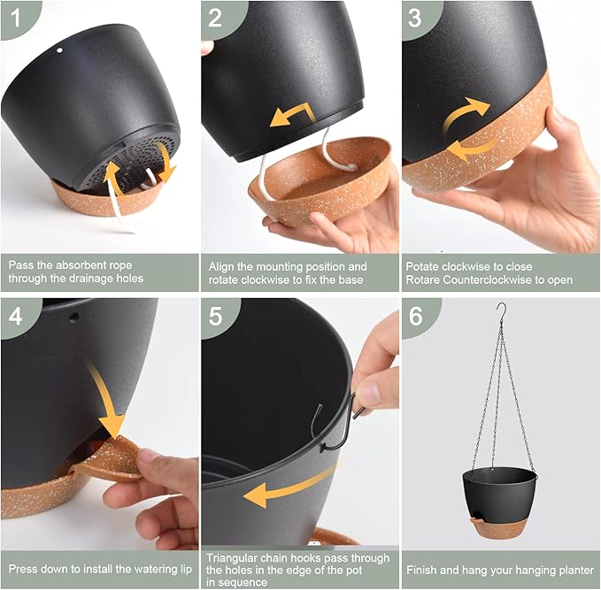 - Drainage Holes - The hanging planter multiple drainage holes can help you avoid over-watering and release excess water. Separate the potting soil from the water surface, enter the water through cotton rope perforations to keep the soil moist and the roots healthy. Self watering flower pots provides the best amount of water for your plants.
