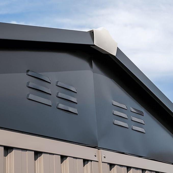 Metal Outdoor Galvanized Steel Storage Shed with Lockable Doors for Backyard or Patio Storage of Bikes, Grills, Supplies, Tools, Toys, for Lawn, Garden, and Camping, Tan (8x6)