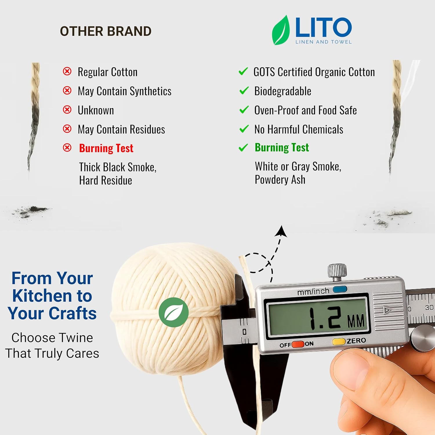 Organic Butcher’s Twine for Cooking & Trussing – 1.2mm Heavy-Duty Natural Cotton Kitchen Twine 200 Feet – Food-Safe, Oven-Safe String for Meat, Turkey, Baking, & Crafts