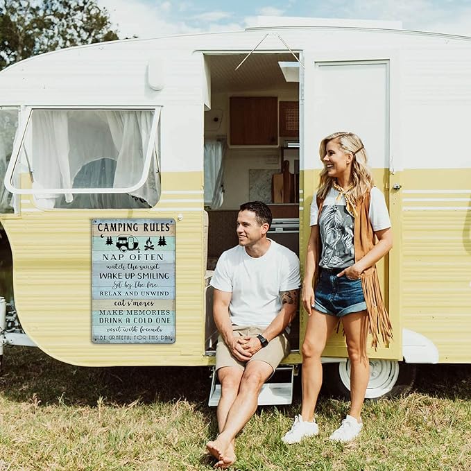 - WIDE RANGE OF APPLICATIOM: These camping rules signs are not really rusty. It is a fun and attractive decoration for your House, Home, Bar, Room, Cabin, Rv, Door or Garage.