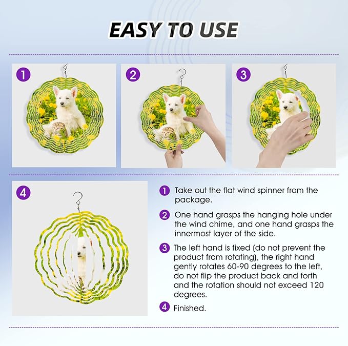 - 【Widely Used】These 3D Metal Sublimation wind spinners can be used for yard, garden, indoor, outdoor, windows, porch decoration; they can also be given as a present to your friends and family. This versatility makes them a popular choice for individuals looking for unique present.