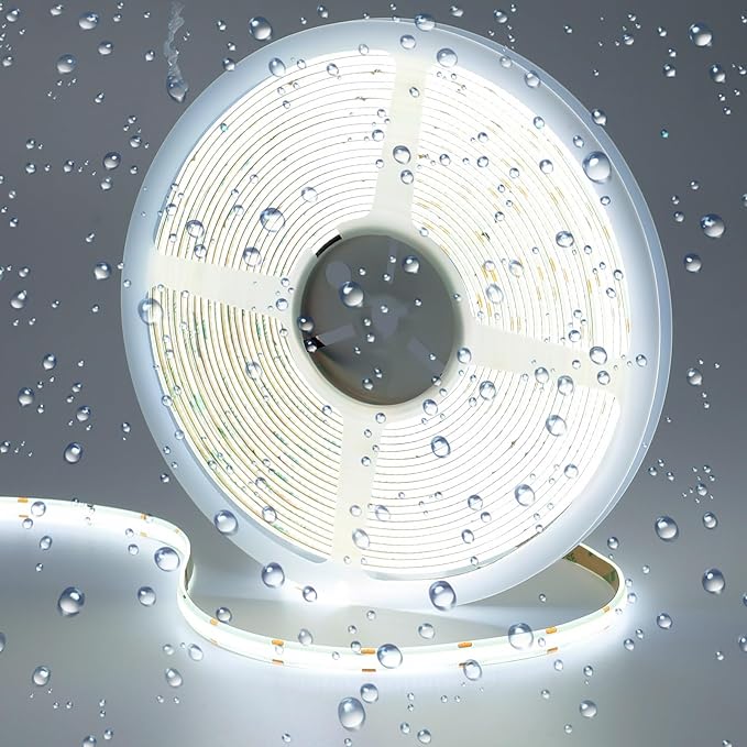 10M/32.8ft 24V COB LED Strip Light Waterproof IP65 Cool White 6000K Uniform Glow 3840LEDs CRI 93+ Flexible LED Tape Lights for DIY Cabinet Bedroom Kitchen Home Decor(No Power Supply)