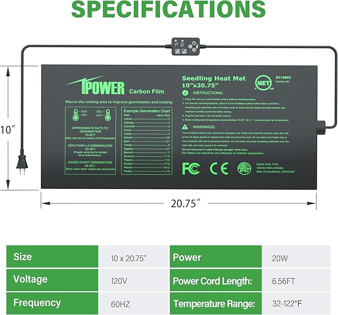 - Dual LED Thermostat: Simultaneously display the real-time and set temperature, which can be adjusted to the required temperature more accurately, a widely range of temperature 32℉~122℉making it the best choice for temperature-sprouting seeds.