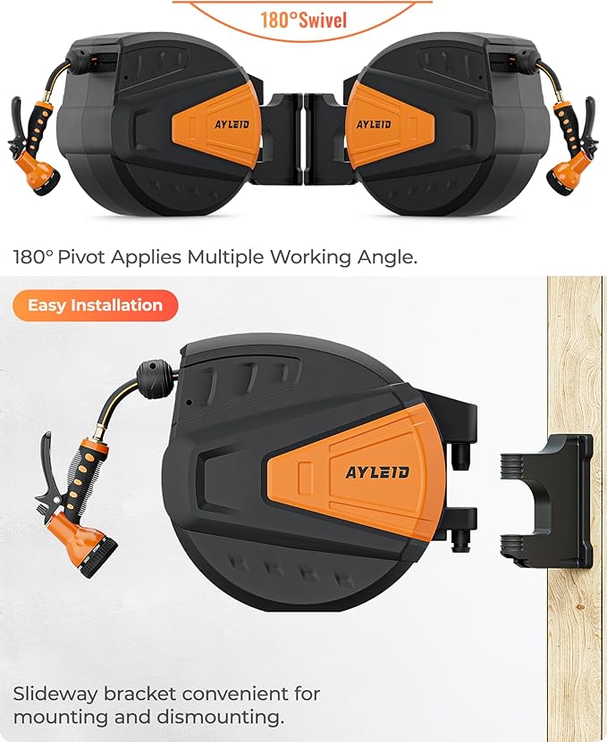 - 【Package included】1pc Ayleid Reel with 100FT Hose; 1pc Hose Nozzle; 1pc 9 Function Spray Nozzle; 1pc Wall mount; 4pcs bolts; 1pc User's Manual.