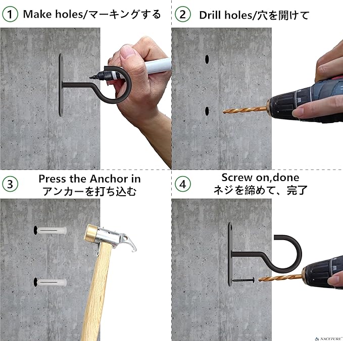 - ๐จ STURDY AND DURABLE CONSTRUCTION - NACETURE Plant hanger hook design ensures stability and strength, suitable for interior and exterior use, indoor plant hangers from ceiling, kitchen, balcony, garden, or any place in your home.