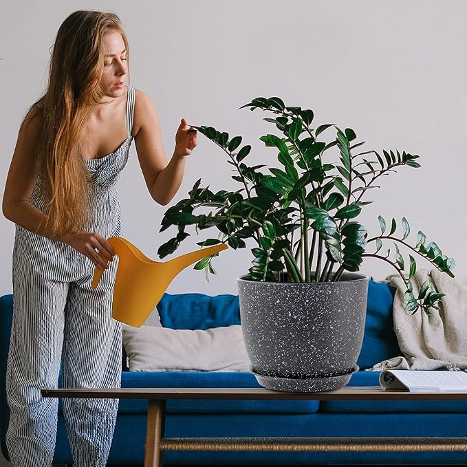 - [Sturdy PP material with Matte Finishing Exterior] There large plastic planters for indoor plants are made of 5.5mm thickness plastic for 12 inch pot, and 5mm for 9~10 inch pot. Be safety placed on the windowsill, home and office. Plastic pots are ligthweight, they tend to retain moisture, so you will water less frequently. And Easy to wash and reuse.