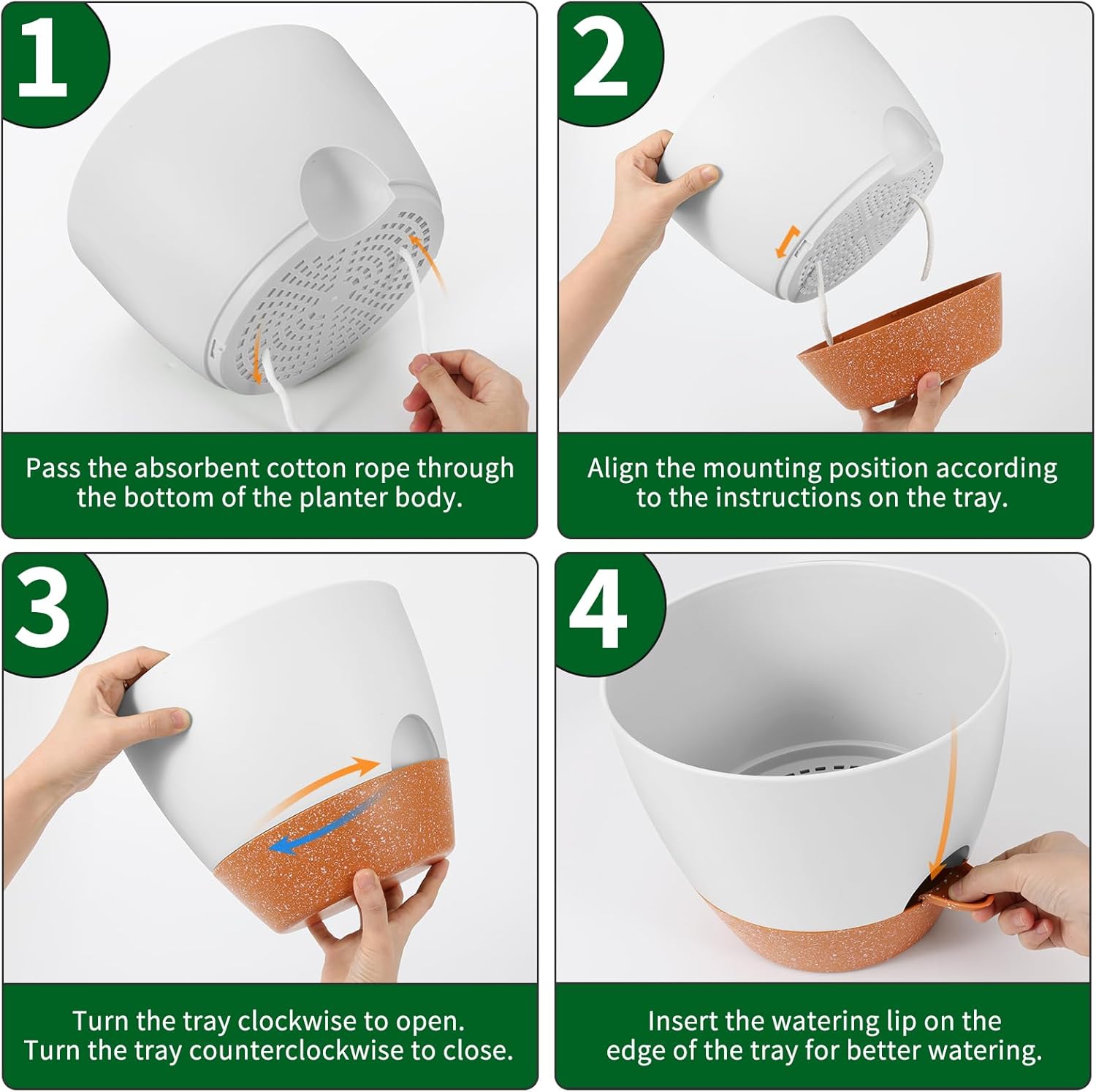 - 【Excellent Drainage Holes and Watering Lip】These pots for plants come with multiple drainage holes in the bottom. The holes and watering lip provide an air circulation system for the plant roots, which greatly reduces the problem of root rot of plants in a closed environment. The independent watering lip replenishes water for plants, so that water does not have to pass through the plant itself, At the same time, it is convenient to observe the current water level.