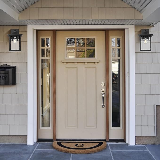 - 🏡RUSTIC STYLE SCONCES: This outdoor wall lantern is 9.9" (L) x 8.7" (W) x 14.5" (H), built by a matte black metal frame with seeded glass, a retro & simple style, complements any outdoor patio’s decor, fits any style with a timeless vintage aesthetic, will perfectly match your beautiful home