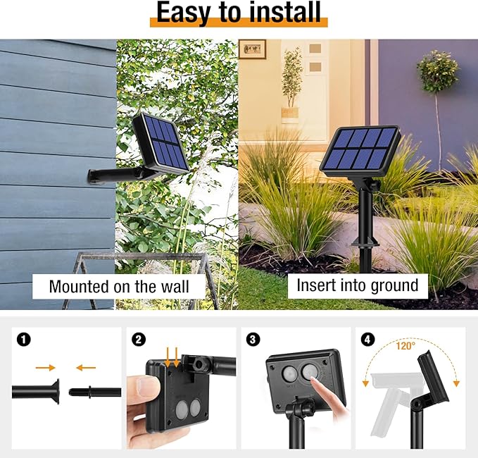 - 【High Efficiency & Auto On/Off】The larger size of the new solar panel translates to a greater surface area for capturing sunlight, resulting in increased charging efficiency. That is to say the device can charge faster and potentially extend its usage time. Automatic full charge in direct sunlight for 6-8 hours and then automatically works for 10-14 hours (Note: charging and working time depend on the weather). Please press the ON/OFF button before charging.