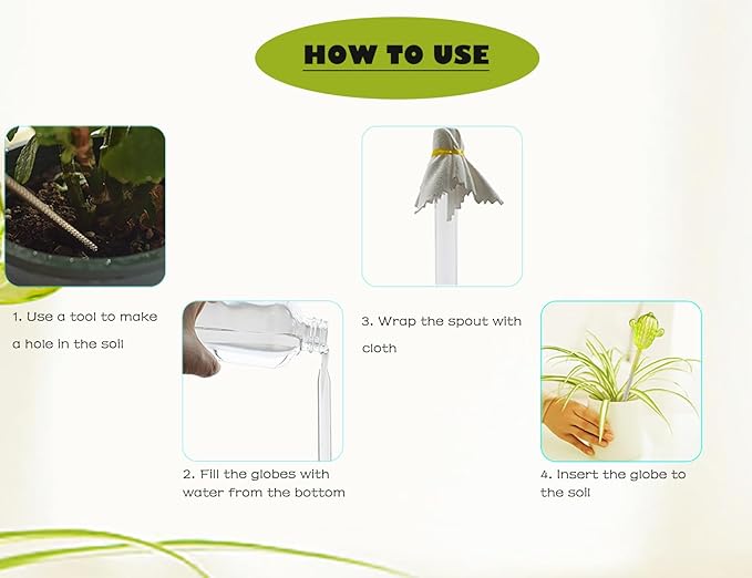 - Easy to use: Simply fill the watering bulbs with water, insert them into the soil, and let them do the rest. No need for complicated watering schedules or timers.
