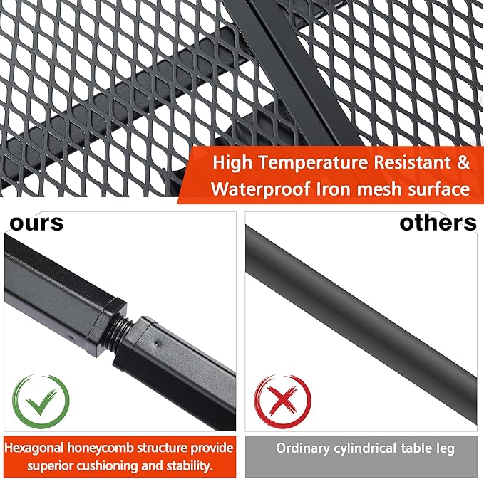- Waterproof and Anti-high Temperature: with a special coating mesh desktop, this grill table can effectively avoid water accumulation and rust. In addition, it’s made of high-temperature resistant material, you can set up a small barbecues to enjoy a beautiful time.