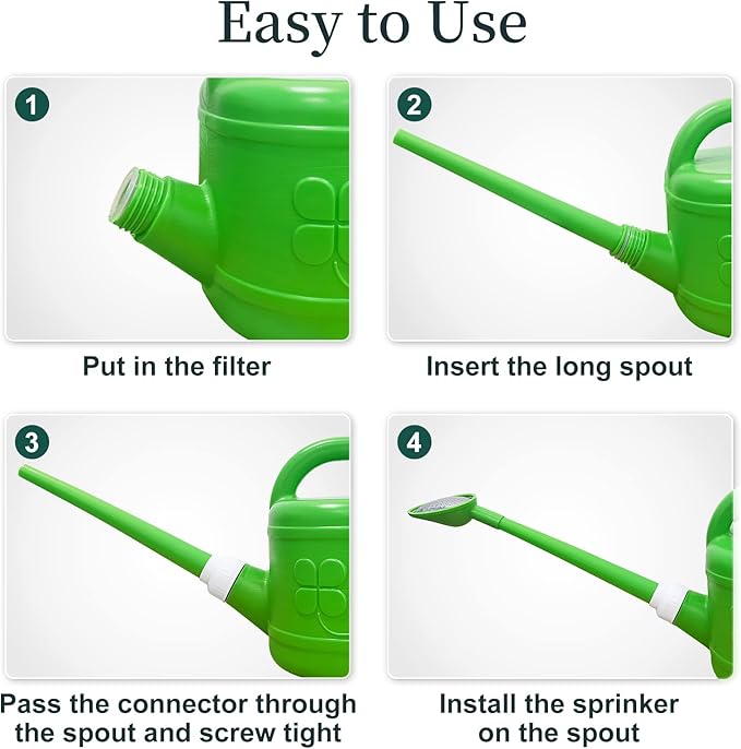 - [PRECISE WATERING, WATERING FLOWERS WITHOUT WORRY]-Plant watering can has a removable long spout, easy to carry and store, when installing, pass the connector through the spout and screw tight, seals well with no leak. Long spout watering can easy to reach distant plants, watering easily without bending over or tilting it too much, it easy to control the overall water flow, directing water exactly where it is needed, allowing every part of the plant to fully absorb the water.