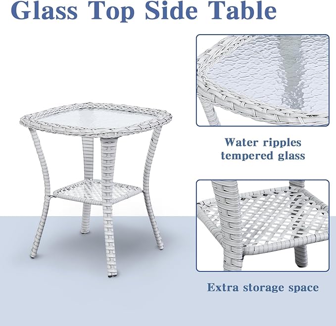 - 2.Sturdy Outdoor Heavy-duty Chairs: Each chair weighs 35 pounds and can provide a load capacity of 350 pounds. Sturdy powder-coated rustproof steel frame provides strong support. This 3-piece bistro set is perfect for any size patio space. Perfect for chat under the stars or a casual date with friends. This outdoor wicker furniture set will serve you well for years to come.