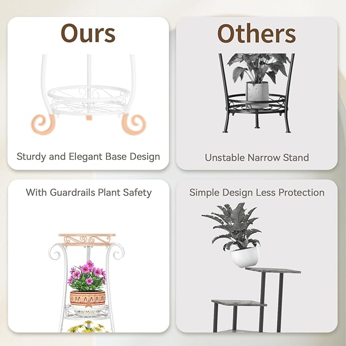 - 【Maximize Space Effortlessly】 Struggling with limited space? This 3 tier metal plant stand maximizes every inch of your living room, balcony, or narrow corner. Enjoy a clutter-free, organized space without sacrificing your love for plants.