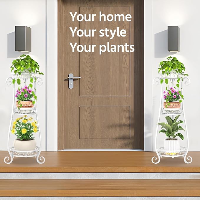 - 【Elegant Home Decor】Our flower stands for indoor plants features graceful curves and vintage wrought iron patterns, adding charm to any room. It’s available in 3 versatile colors, making it the perfect centerpiece for your entryway, impressing guests and reflecting your taste.