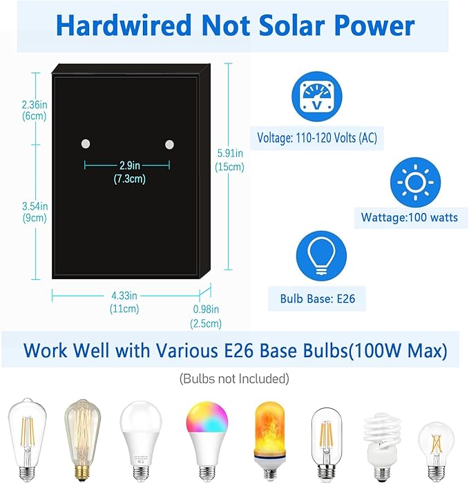 - 【Friendly Reminder】This outdoor wall lantern is powered by a 110-120V wired power source, not solar energy.Solar lights are easily affected by weather conditions, leading to unstable performance and potential battery damage.By using a wired power source, we ensure that the light operates with stability and durability