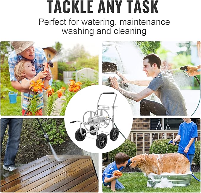 - Large Hose Capacity: Are you tired of coming up short? The hose reel cart can hold up to 300 ft of 5/8’’ hose (hose not included), allowing you to reach various corners of your garden, backyard, or other areas without any limitations.