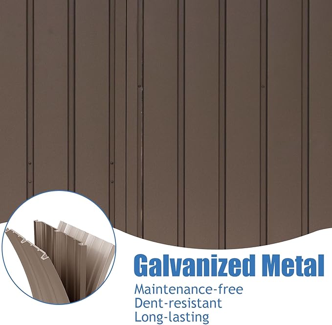 Domi Outdoor Storage Shed 8.2' x 6.2', Metal Steel Utility Tool Shed Storage House with Double Lockable Doors & Air Vents for Backyard Patio Garden Lawn Brown