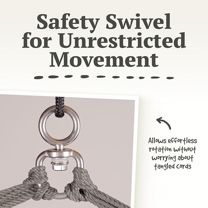 - SEAMLESS SWINGING EXPERIENCE: Embrace unrestricted movement with the integrated 360° safety swivel. Pivot effortlessly in any direction – a cotton hanging hammock chair for indoor, offering a SEAMLESS SWINGING EXPERIENCE for indoor lounging.