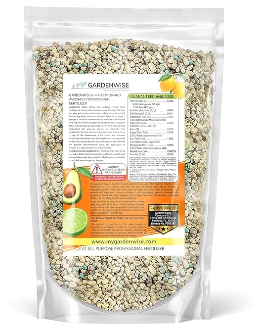 - 🍋 Grows Delicious Fruits: With a balance of 6% nitrogen, 4% phosphorus and 6% potassium, Gardenwise’s 6-4-6 Citrus and Avocado Professional Fertilizer nourishes your indoor and outdoor trees with a high-quality blend of nutrients. You’ll love the incredible flavors!